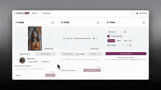 Tip: Lemon Slice Studio works with input images of ANY aspect ratio. Make sure "Crop face" is OFF so that the image's original aspect ratio is used.