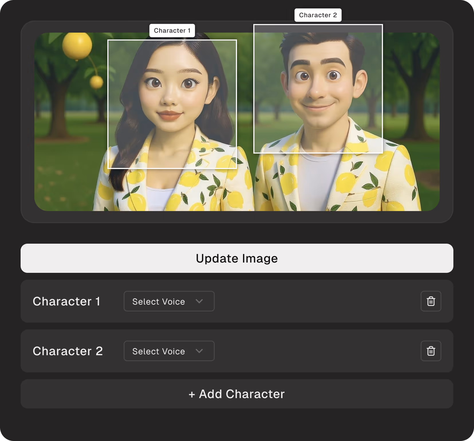 Upload a single photo and watch it come alive. Or, provide a video to extract the face and give it a new voice. Lemon Slice animates any face with natural expressions and realistic gestures. Create multilingual short videos or build a consistent brand spokesperson.